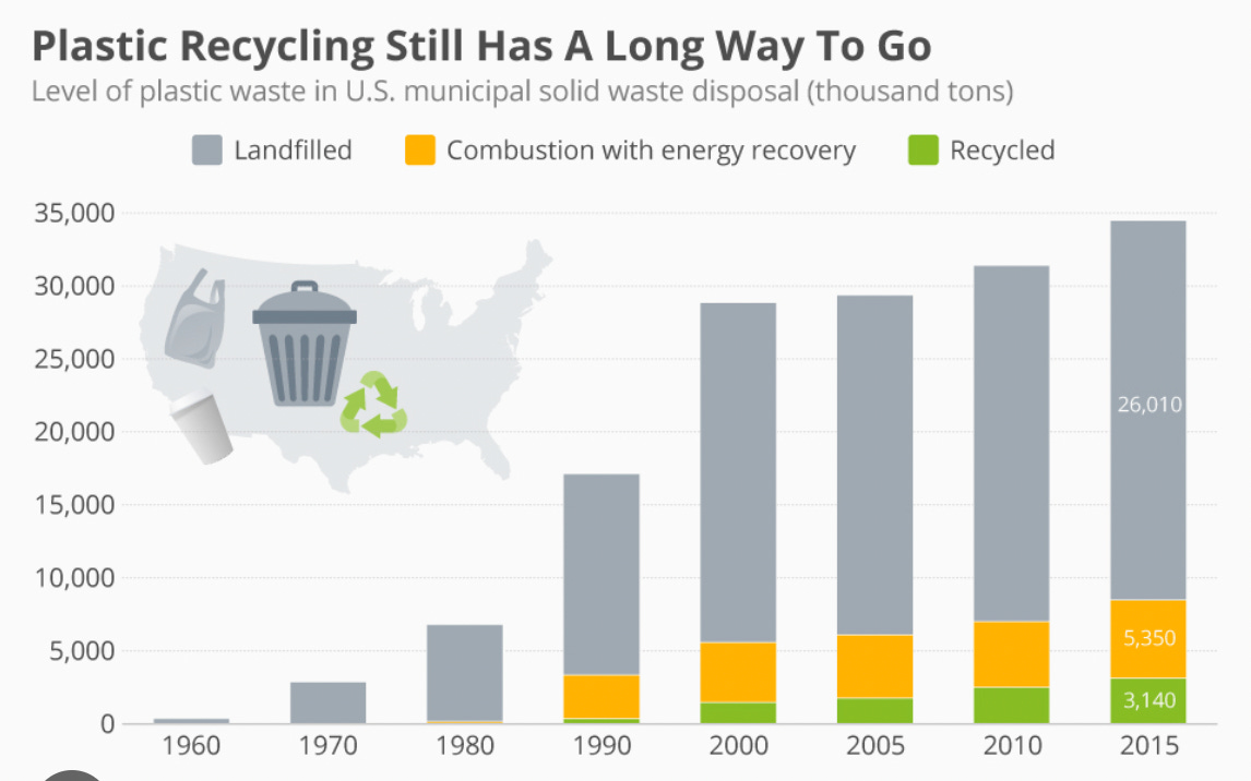 To summarize, in 2015 we generated approximately 26 million tons of plastic waste. 5,350,000 million tons made it into the recycle bin and of that only 3,140,000 million tons was supposedly recycled.